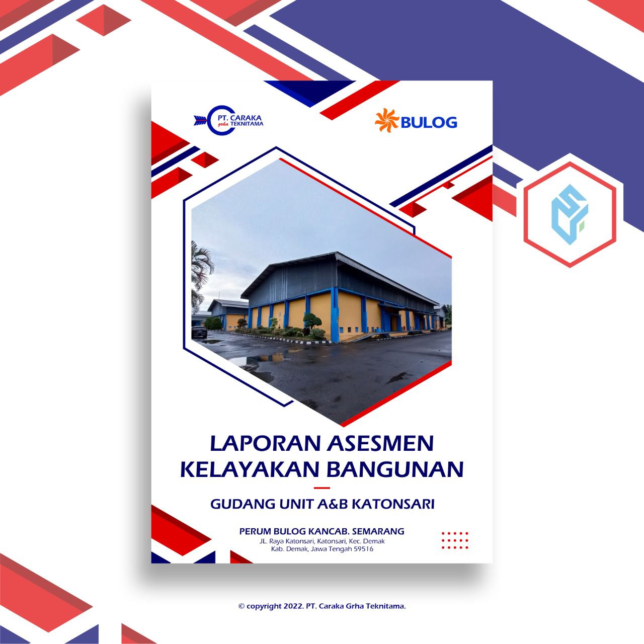 - Laporan Asesmen Kelayakan Bangunan Gudang Unit A&B Katonsari Demak, Kantor Bulog Kancab. Semarang.