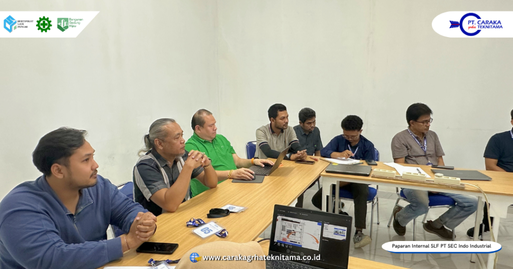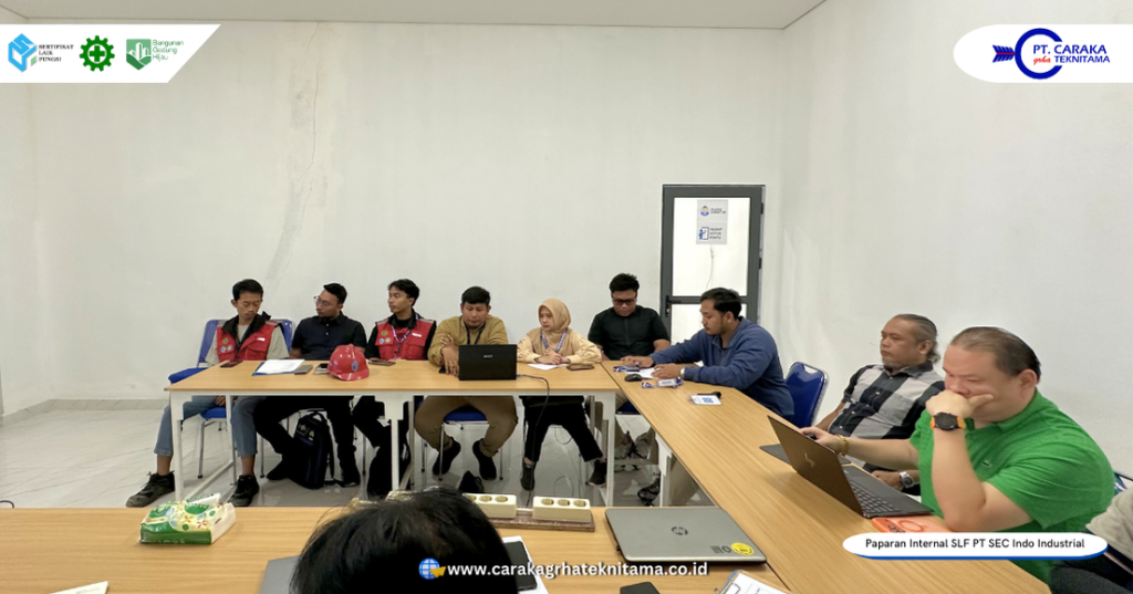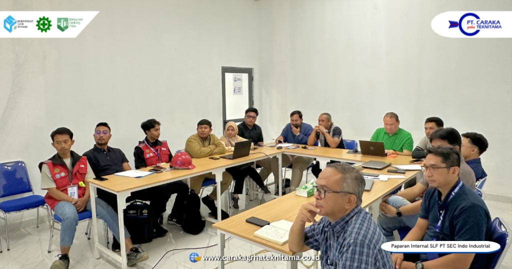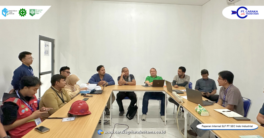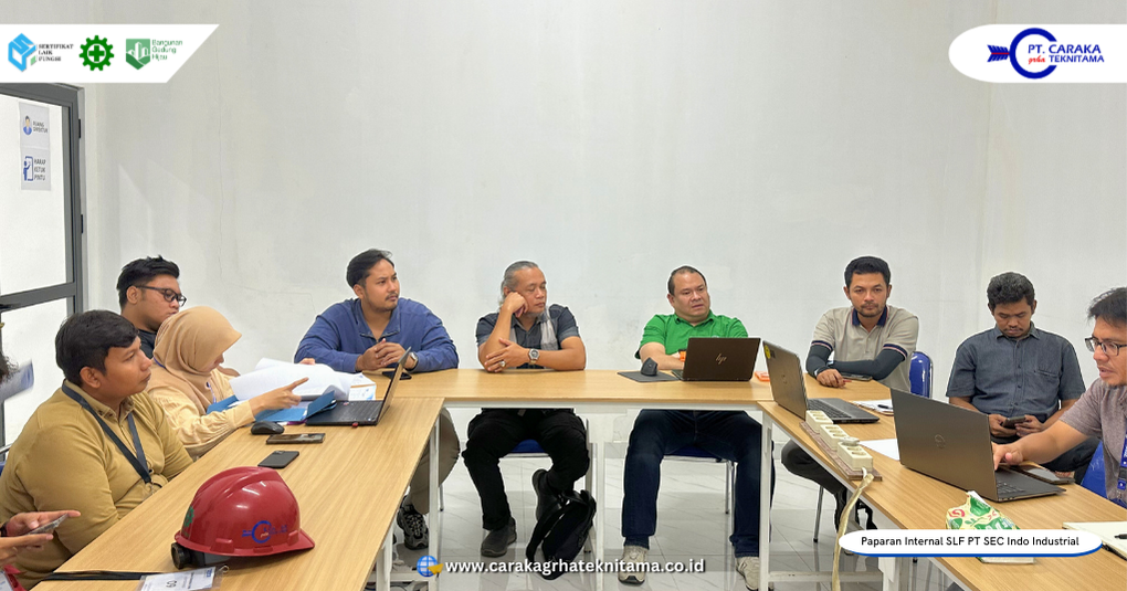 Kegiatan paparan internal dokumen kajian teknis Sertifikat Laik Fungsi (SLF) dilaksanakan di Ruang Meeting PT SEC Indo Industrial, yang berlokasi di Jl. Jodipati No. 10, Kawasan Industri Kendal, Desa Wonorejo, Kecamatan Kaliwungu, Kabupaten Kendal, Jawa Tengah. Kegiatan ini menjadi bagian strategis dalam rangka konsolidasi akhir sebelum memasuki tahapan sidang SLF. Hadir dalam kesempatan tersebut Direktur Utama, Direktur Operasional, Tim Tenaga Ahli, Tim Engineer dan Administrator Teknik dari PT Caraka Grha Teknitama. Perwakilan Owner, Direktur, manajemen dan tim teknis dari PT SEC Indo Industrial.