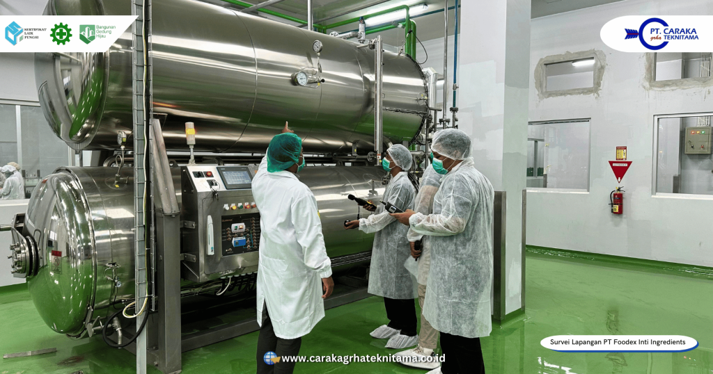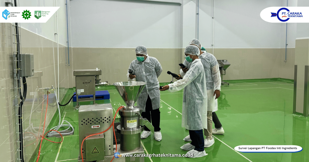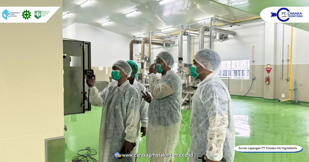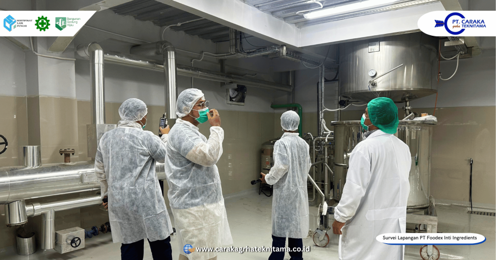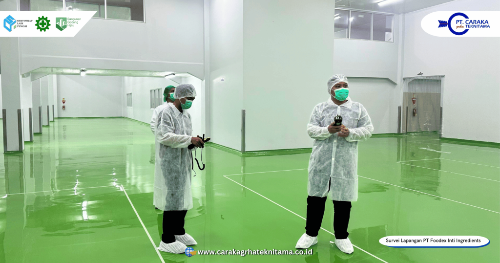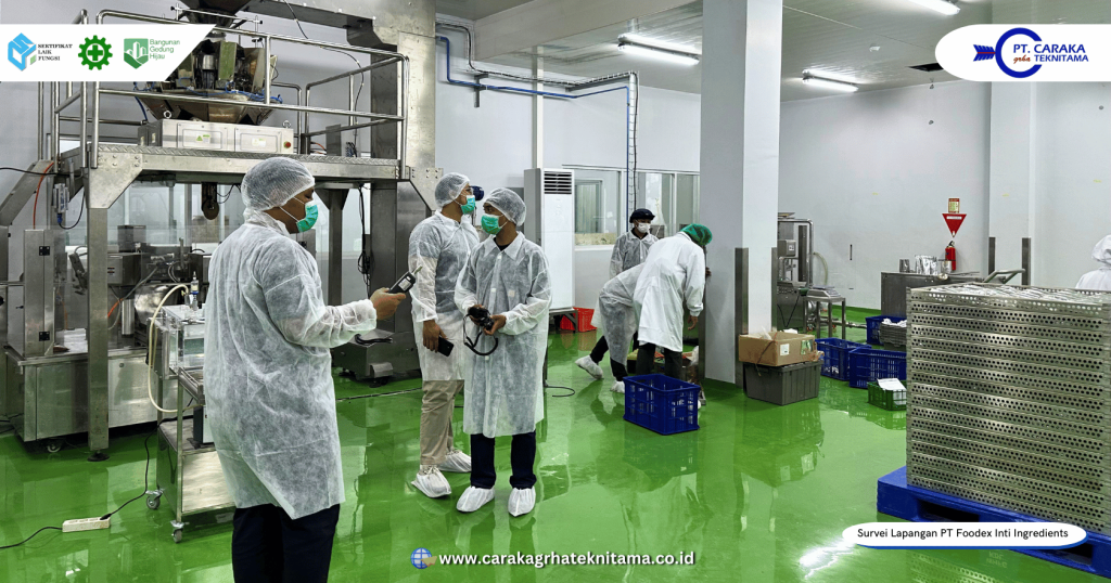 PT Caraka Grha Teknitama selaku konsultan yang dipercaya oleh PT Foodex Inti Ingredients dalam proyek penerbitan SLF, melaksanakan survei lapangan dan pengujian teknis secara komprehensif dan sistematis. Kegiatan diawali dengan koordinasi pra-survei yang membahas pembagian area serta penetapan objek pengujian, sehingga seluruh proses dapat berjalan efektif dan sesuai dengan rencana pengujian yang telah disusun sebelumnya.