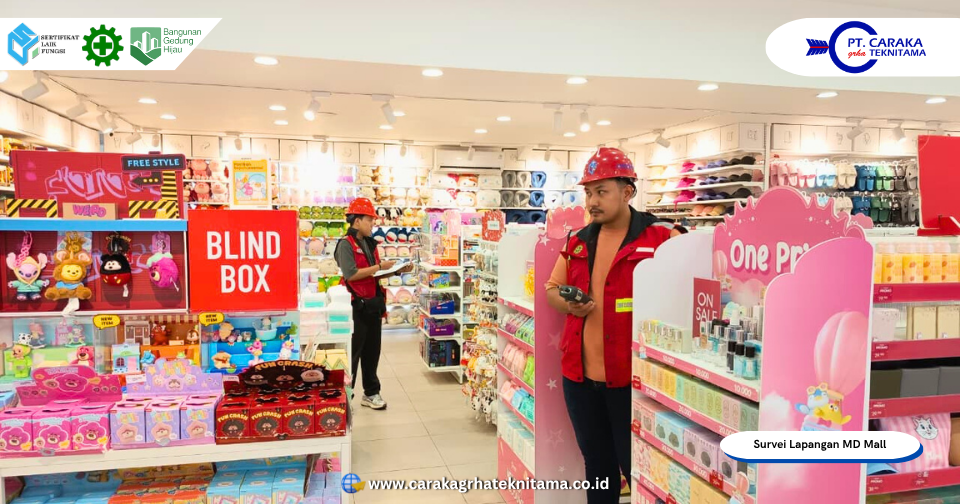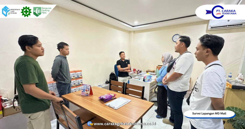 Kegiatan survei bangunan gedung eksisting MD Mall dan MD Jepon Grosir & Retail resmi dilaksanakan pada 17-19 November 2025, berlokasi di dua titik utama yakni MD Mall yang beralamat di Jl. Pemuda No.3, Kunden, Kec. Blora, Kabupaten Blora dan MD Jepon Grosir & Retail yang berlokasi di Jl. Nasional Blora–Cepu Km 7, Jepon, Kec. Jepon, Kabupaten Blora. Survei ini merupakan tahap awal dalam rangka penyusunan dokumen kajian teknis dan penerbitan Sertifikat Laik Fungsi (SLF), yang dilaksanakan oleh PT Caraka Grha Teknitama selaku konsultan resmi yang dipercaya oleh CV MD Morodadi. Pelaksanaan kegiatan ini dimulai setelah prosesi penandatanganan kontrak kerja antara kedua pihak yang bertempat di Olive Eatery & Coffee Blora, sebagai tanda dimulainya kerjasama teknis yang terstruktur dan profesional.