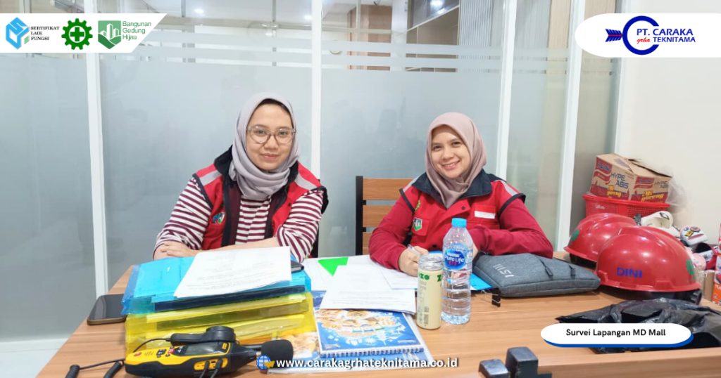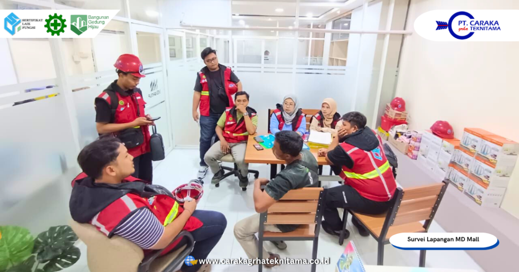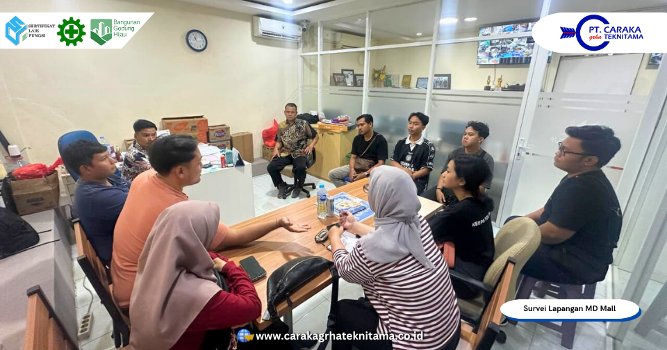Kegiatan ditutup dengan penyampaian temuan awal kepada pihak manajemen sebagai dasar evaluasi awal. Secara keseluruhan, proses survei berjalan lancar dan memenuhi standar pemeriksaan bangunan gedung. Seluruh hasil observasi, pengujian, dan dokumentasi akan diolah menjadi kajian teknis SLF untuk MD Mall dan MD Jepon, dilengkapi rekomendasi teknis dari Tim Ahli PT Caraka Grha Teknitama untuk mendukung pemenuhan standar kelaikan fungsi bangunan sesuai ketentuan regulasi yang berlaku.