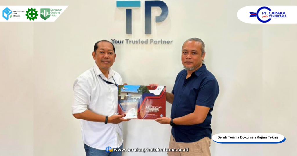 Sebagai konsultan yang dipercaya mendampingi proses teknis, PT Caraka Grha Teknitama memiliki peran sentral dalam memastikan pemenuhan seluruh aspek teknis dan administratif yang dipersyaratkan dalam penerbitan SLF. Profesionalisme dan pengalaman tim dalam bidang rekayasa bangunan, tata ruang, dan regulasi teknis menjadi landasan utama terwujudnya hasil kajian yang komprehensif. Penyerahan dokumen ini menjadi bukti nyata bahwa sinergi antara konsultan dan pemilik bangunan mampu melahirkan capaian teknis yang tidak hanya legal secara prosedural, tetapi juga bermakna secara substantif bagi keberlanjutan operasional perusahaan.