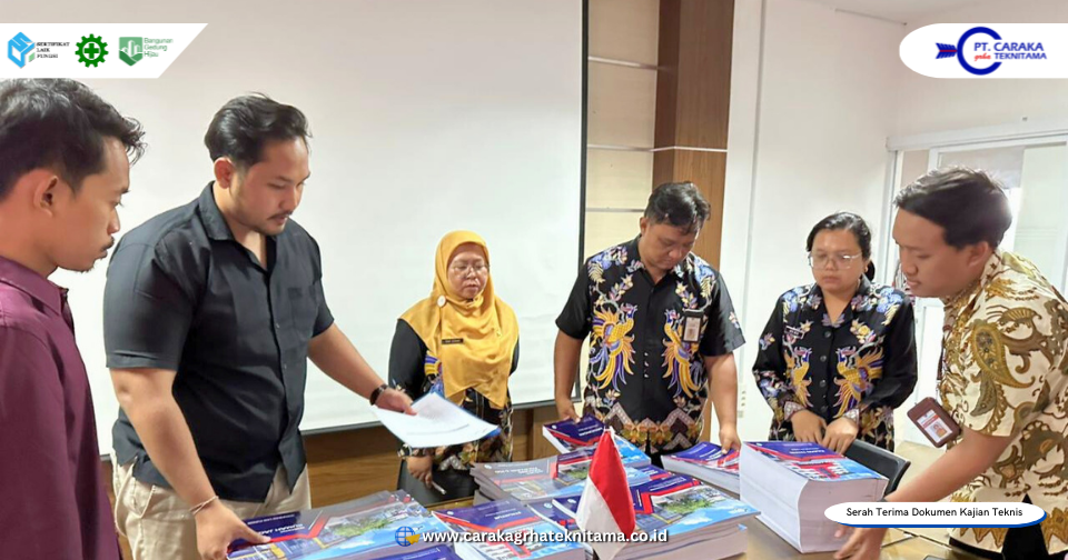 Dalam prosesi serah terima, PT Caraka Grha Teknitama menyerahkan 35 eksemplar dokumen kajian teknis dalam bentuk hard copy dan soft copy. Adapun 175 eksemplar hard copy lainnya akan dikirimkan pada hari yang berbeda, disesuaikan dengan kebutuhan administrasi dan distribusi internal. Kegiatan dilanjutkan dengan pengecekan bersama atas kelengkapan dan kesesuaian dokumen oleh seluruh pihak yang hadir.