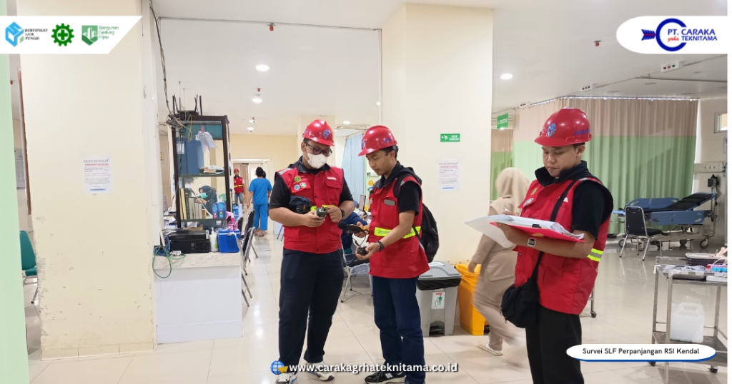 Sebagai upaya memastikan keberlanjutan kelaikan fungsi bangunan, PT Caraka Grha Teknitama yang bergerak di bidang perencanaan serta konsultan SLF dan PBG kembali dipercaya sebagai konsultan dalam proses perpanjangan Sertifikat Laik Fungsi (SLF) ke-1 pada Bangunan Gedung RS Islam Kendal. Perpanjangan SLF yang dilaksanakan setiap lima tahun merupakan tahapan evaluasi ulang terhadap kinerja bangunan, guna memastikan bahwa seluruh aspek teknis masih memenuhi prinsip keselamatan, kesehatan, kenyamanan, dan kemudahan (4K) sesuai ketentuan regulasi penyelenggaraan bangunan gedung di Indonesia.