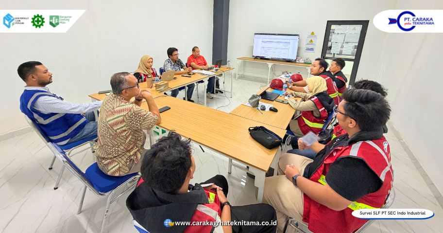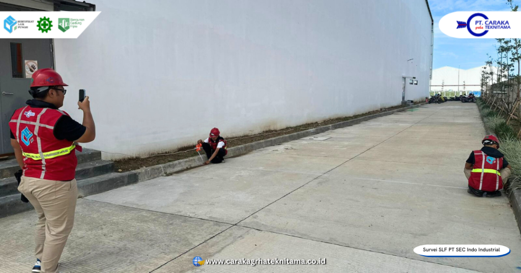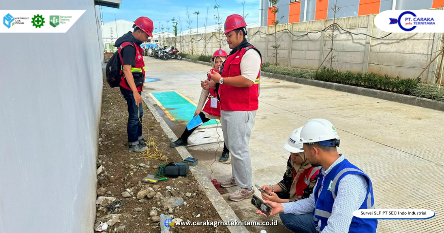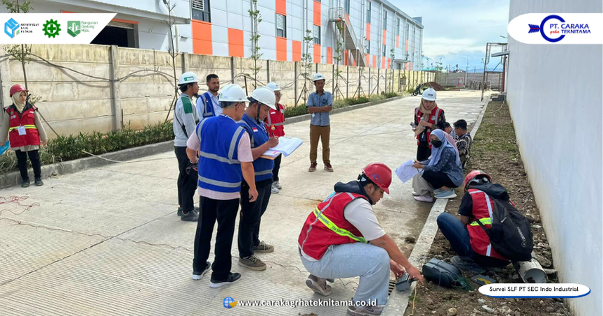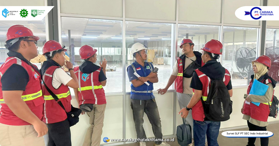 Survei pendampingan ini dilaksanakan oleh PT Caraka Grha Teknitama selaku konsultan yang ditunjuk oleh PT SEC Indo Industrial dalam proyek penerbitan SLF. Kegiatan dihadiri oleh Tenaga Ahli, Tim Engineer, Tim Studio, Administrator Teknik, serta personel K3. Selain itu, dalam pertemuan pasca survei, hadir Perwakilan Owner, Direktur, Manager, Divisi Teknis PT SEC Indo Industrial, serta pihak pelaksana proyek (kontraktor), sebagai bentuk kolaborasi lintas fungsi dalam menjamin keselarasan teknis dan manajerial.