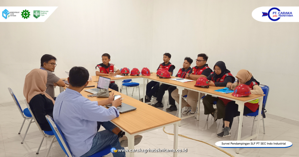 Survei Pendampingan kesiapan Pengurusan Sertifikasi Laik Fungsi (SLF) pada bangunan gedung Industri PT SEC Indo Industrial yang berlokasi di Jl. Jodipati No. 10, Kawasan Industri Kendal, Desa Wonorejo, Kecamatan Kaliwungu, Kabupaten Kendal, Jawa Tengah. Agenda ini merupakan bagian strategis dalam tahapan pemenuhan persyaratan laik fungsi bangunan gedung, sekaligus memastikan kesesuaian aspek teknis, administratif, dan operasional sebelum memasuki tahapan paparan internal, sidang, serta visitasi lapangan oleh dinas terkait.