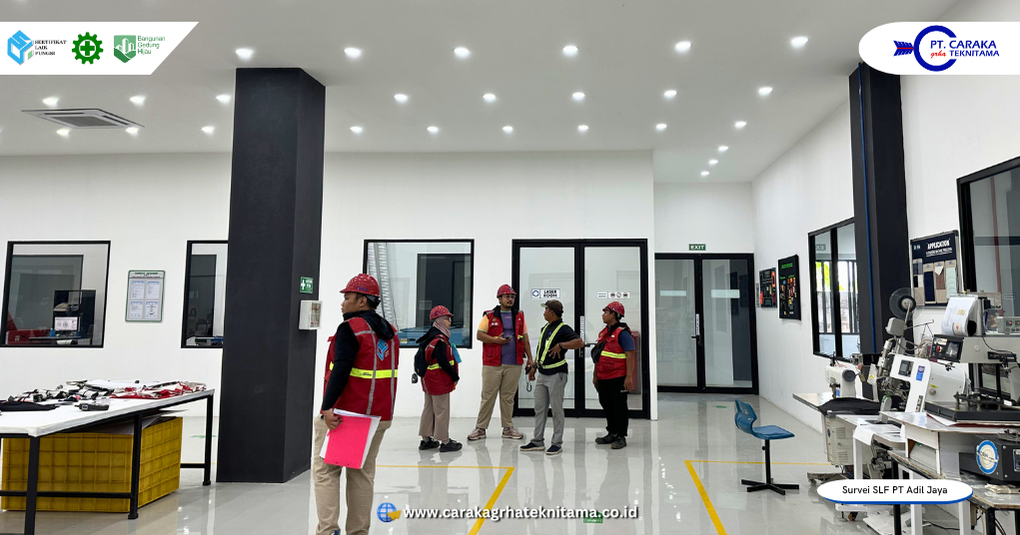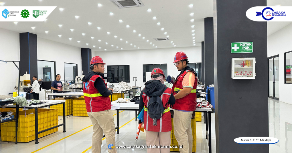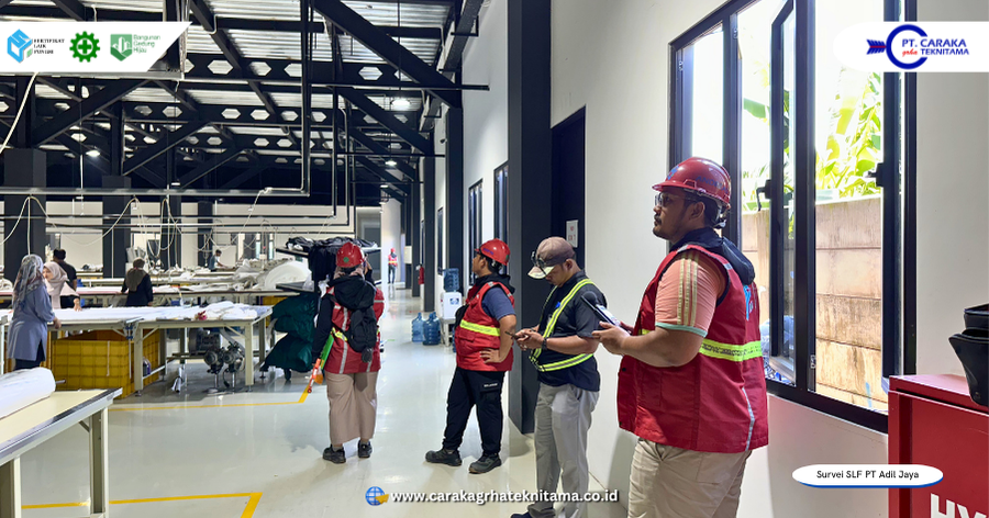 Kegiatan survei Sertifikat Laik Fungsi (SLF) pada bangunan gedung industri milik PT Adil Jaya di Kendal, Jawa Tengah, dilaksanakan oleh Tim Surveyor PT Caraka Grha Teknitama, konsultan profesional di bidang perencanaan serta Projek SLF dan Persetujuan Bangunan Gedung (PBG). Proses penerbitan SLF ini merupakan tahapan krusial dalam memastikan bahwa bangunan gedung agar memenuhi standar kelaikan fungsi sesuai dengan ketentuan regulasi nasional. Evaluasi ini mencakup pemenuhan aspek keselamatan, kesehatan, kenyamanan, dan kemudahan (4K) yang menjadi parameter utama dalam penyelenggaraan bangunan gedung di Indonesia.