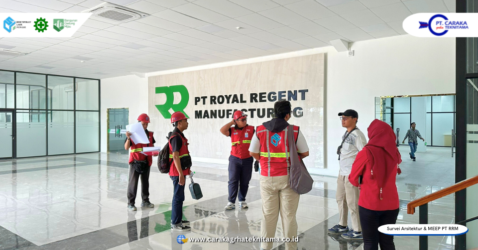 Survei tersebut dilaksanakan oleh Tim PT Caraka Grha Teknitama selaku konsultan yang didaulat dalam proyek penerbitan SLF, terdiri atas Tenaga Ahli Arsitektur, Engineer Arsitek, Engineer MEEP, Tim Studio, dan K3. Turut hadir pula Tim PT Royal Regent Manufacturing yang meliputi Assistant Director, Assistant General Manager, Engineer Construction, Engineer Listrik, serta Tim HSE. Sinergi kedua belah pihak mencerminkan komitmen profesional dalam memastikan terpenuhinya aspek keselamatan, kesehatan, kenyamanan, dan kemudahan (K4) pada bangunan industri tersebut.